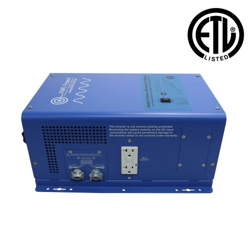 The AIMS 1000 watt low frequency inverter charger ETL listed model conforms with UL 458 standards, has surpassed ETL ratings, and includes a two year warranty. This inverter is perfect for most off grid systems, semi-trucks, 5th wheels, toy haulers or any remote location needing power. Providing 1000 watts of continuous, clean and reliable pure sine wave power, ideal for sensitive electronics and household appliances. If needed, this inverter has the capability of producing 3000 watts of total surge power for 20 seconds, for start up applications like refrigerators, computers, fans and microwaves (if running more than 3000 watt often, we strongly recommend purchasing a larger inverter).