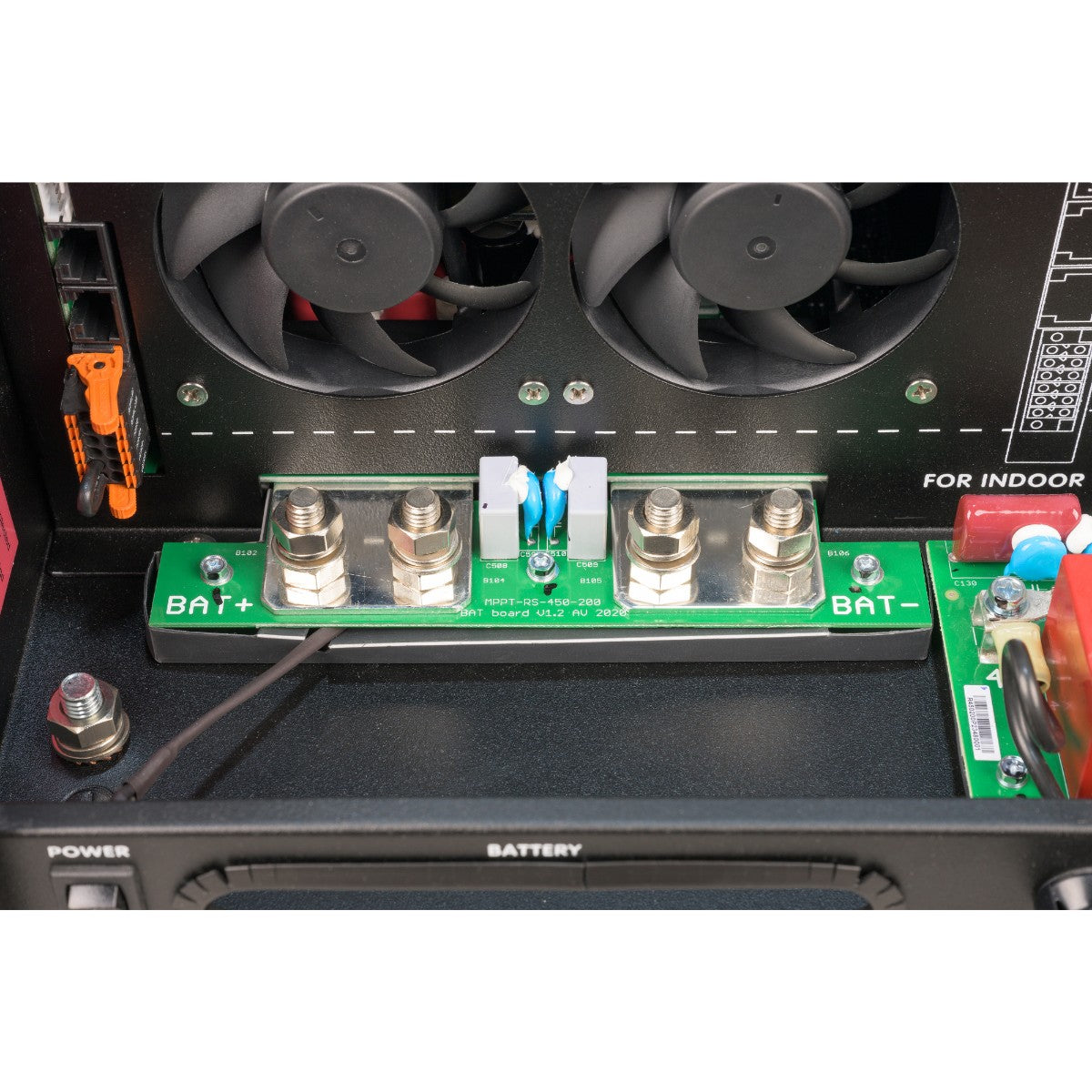 The SmartSolar MPPT RS solar charge controllers are Victron's solution for systems with large series connected PV arrays charging 48 V DC battery banks. This product is perfect for large off-grid, and grid connected battery systems.